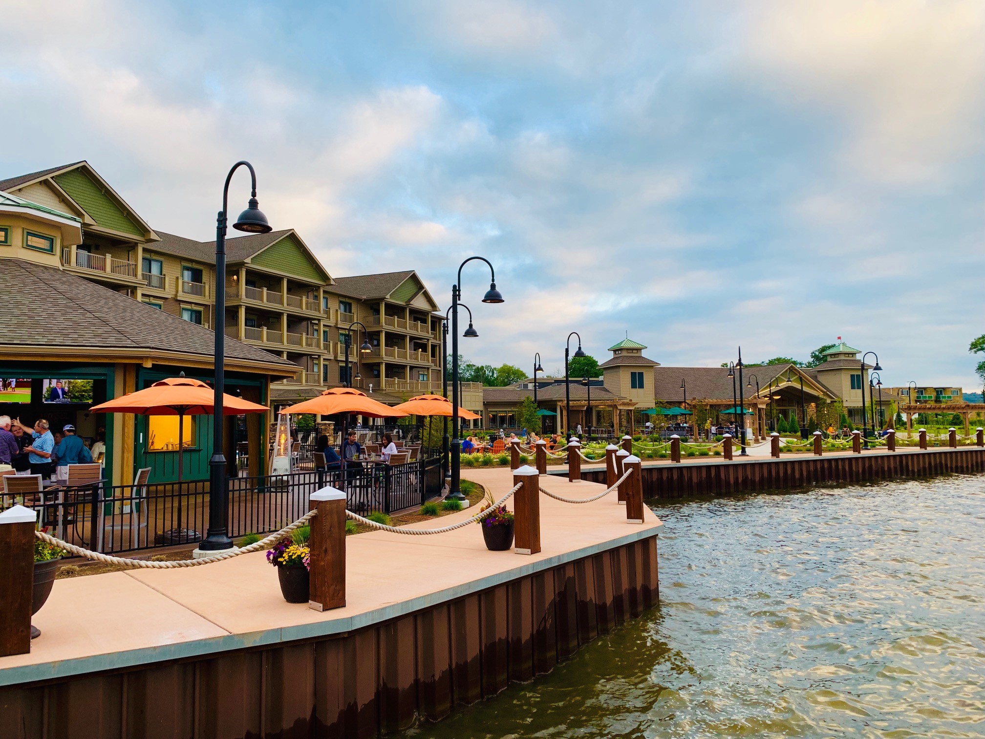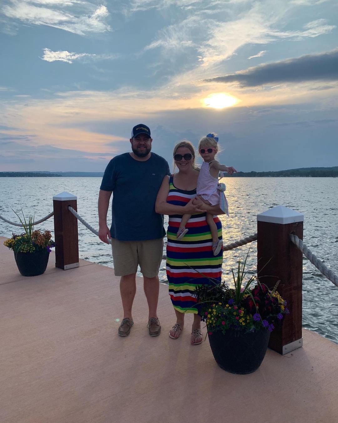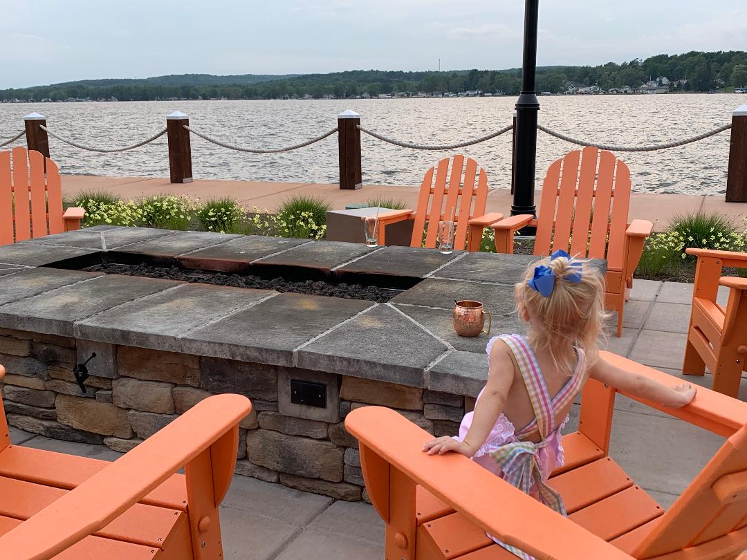 Dining: Upon arrival we ate at the main restaurant. We love to sit outside and they accommodated us. We enjoyed a lovely view of the lake while dining. We were greeted with a bowl of delicious bread. Even the olive bread was good and neither of us typically care for that type of bread. The server was wonderful. They noticed that it was late and we had a toddler so they brought Roseanne’s food out right away. Ben probably liked his fish and shrimp more than Rebekah liked her steak. For what its worth, Roseanne loved her grilled cheese and ice cream sundae 🙂 We had a slice of pie for dessert and it was great!