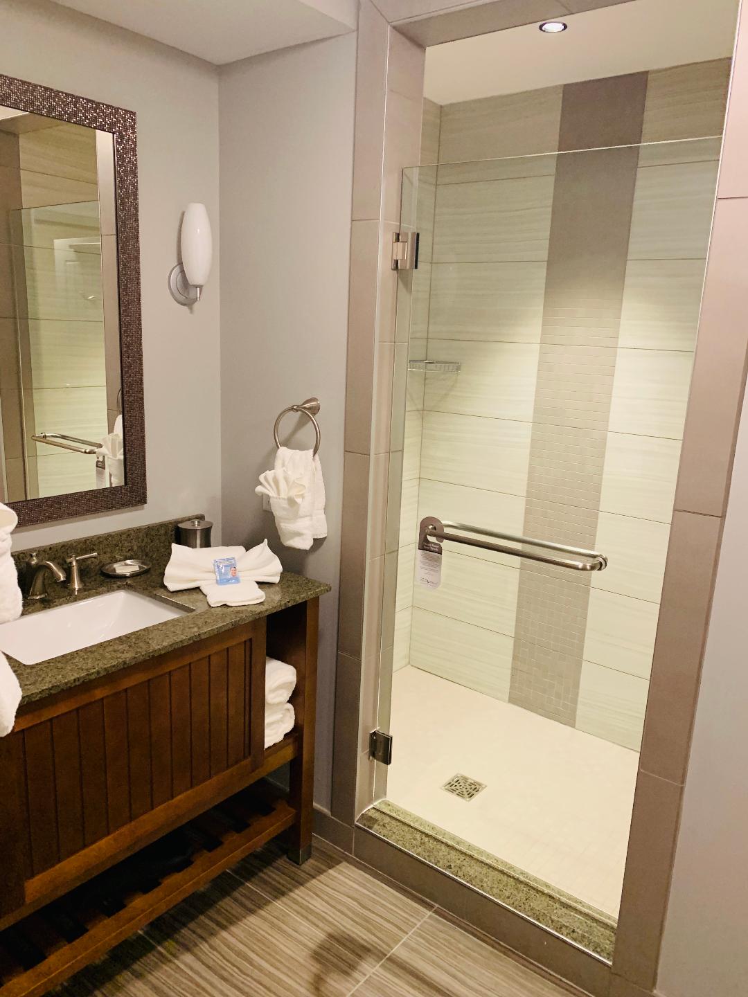Check-In: There is a large covered area to park when you are unloading/loading your car, but no valet. Upon entering the lobby it is clean and well appointed. The best part is the view of the lake and the outdoor bar area that greet you as soon as you walk in. The desk agents were friendly and helpful. They provided plenty of information regarding the property and things to do. Since we were arriving later in the evening with toddler in tow, we called prior to our arrival to make sure there was a pack-in-play in our room. Brooke, who checked us in, ensured that it was already up in the room.