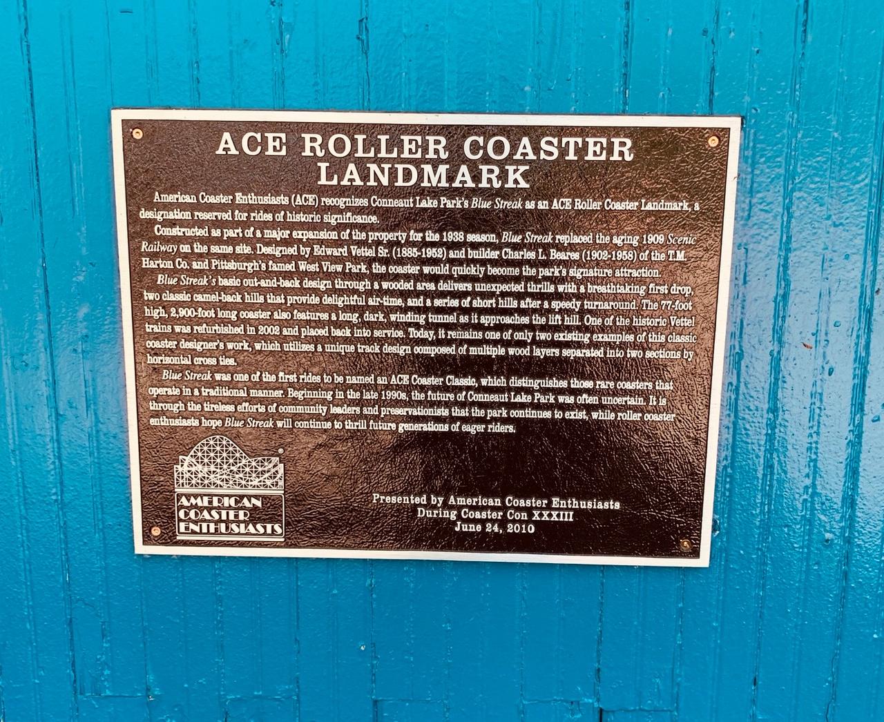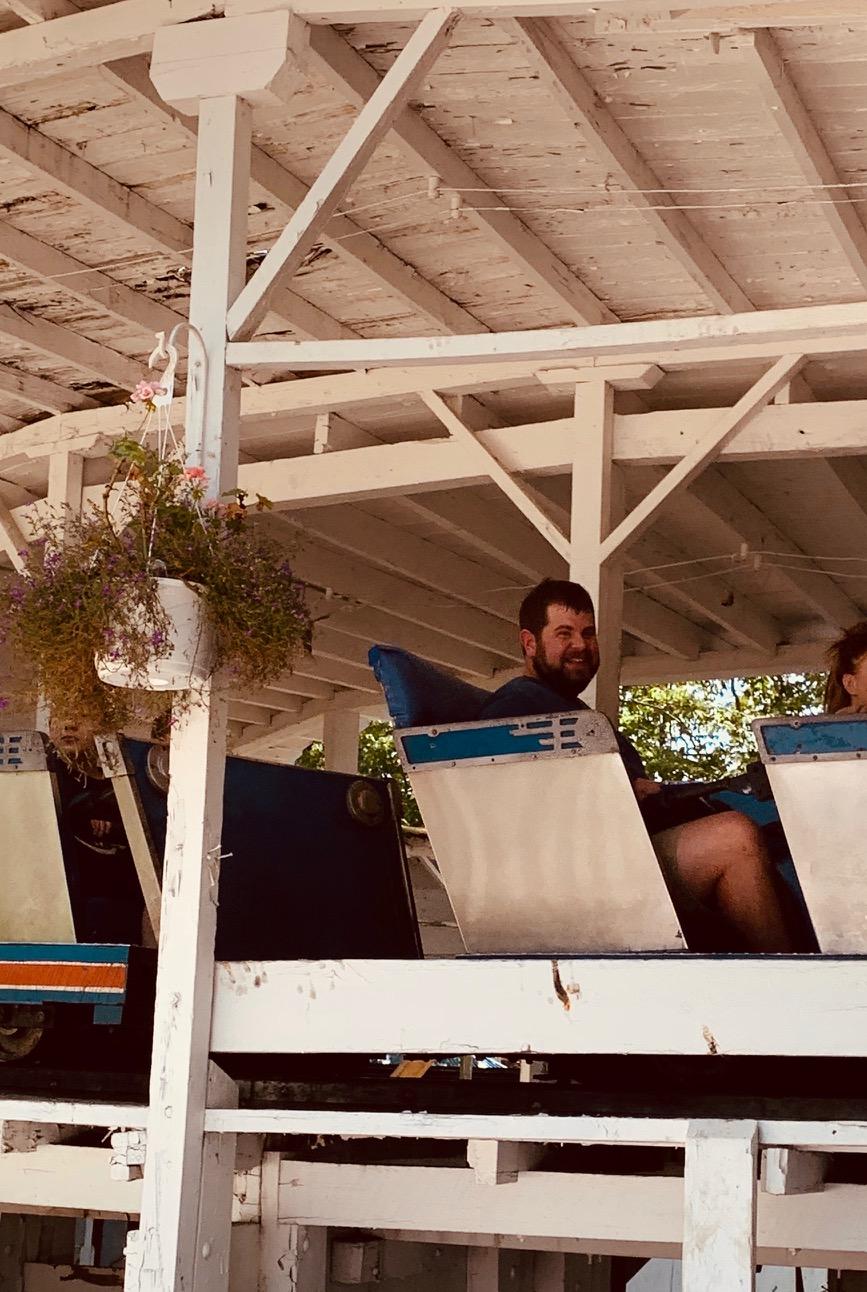 After lunch we took a short walk over to check out Conneaut Lake Park. It is a small amusement park with many rides for little kids. The park has a carousel, a old traditional dark ride called the Devil’s Den, a small water park and lazy river, and lastly the crown jewel of the park the Historic Blue Streak Roller Coaster. It was built in 1938 and was one of the first dedicated ACE Roller Coaster Landmarks. Rebekah has rode this ride, many times, so she waited back with Roseanne. (Plus it looked a little shaky after all these years, LOL). After a short wait, it was my turn. It was fun, but a little rough, traditional wooden coaster. I would highly recommend it for coaster enthusiast.