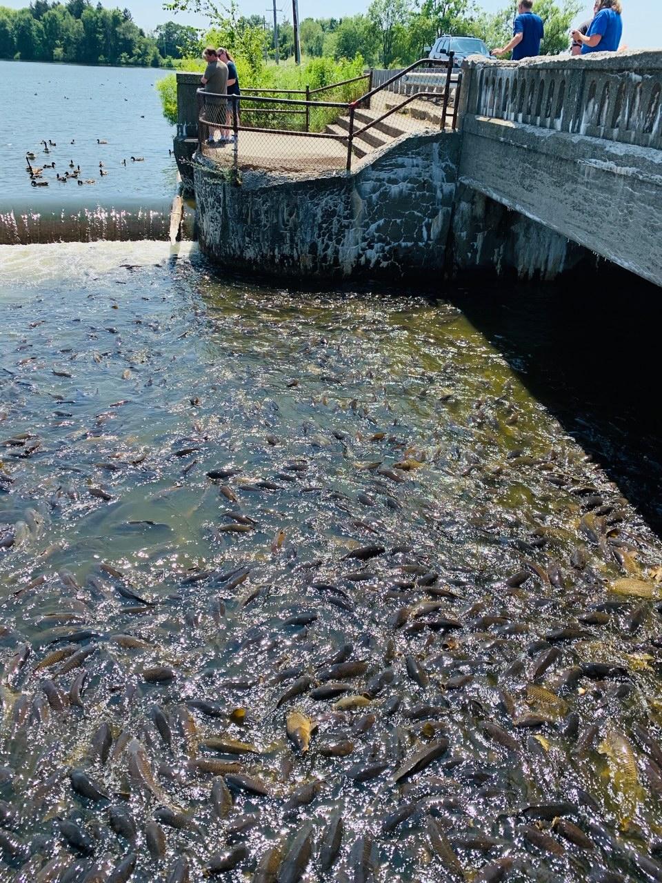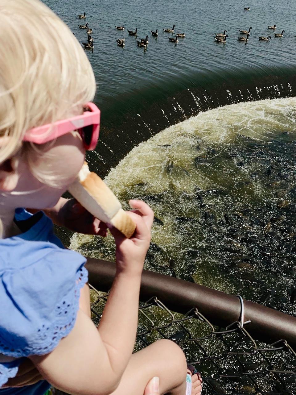 We had one more stop on our way back to our hotel. It is a legend in Rebekah’s family – “Where the Ducks Walk on the Fish”… The Linesville Spillway in Linesville, PA. The spillway is a quick drive from Conneaut Lake Park. Maybe a 10 minute drive through some small towns and beautiful rural countryside. The spillway is part of Pymatuning State Park and Reservoir. From my understanding, fish will naturally accumulate at spillways as a source for food. Since sometime in the 1930s, people have been feeding fish loaves of bread at the Linesville Spillway. Needless to say the Carp have figured this out and the sight is something to see. If you forget to bring your own loaf of bread, it is sold at the little concession stand at the spillway. On the day we were there, there were probably a 100 people feeding the fish. Roseanne was not as impressed with this as Rebekah and I. She was more interested in eating her bread than feeding it to the fish. While this might seem like something weird to check out, I would say this is a can’t miss activity, especially if you have kids!