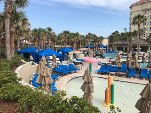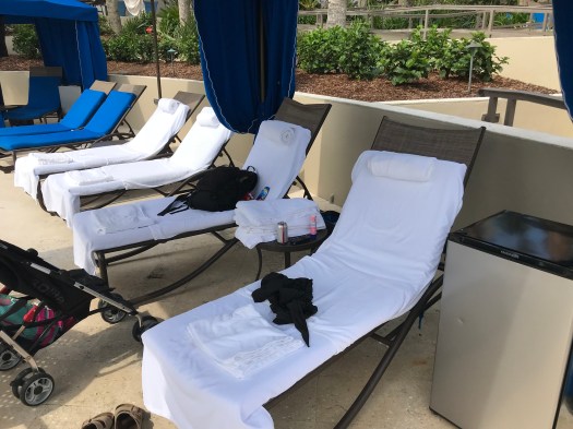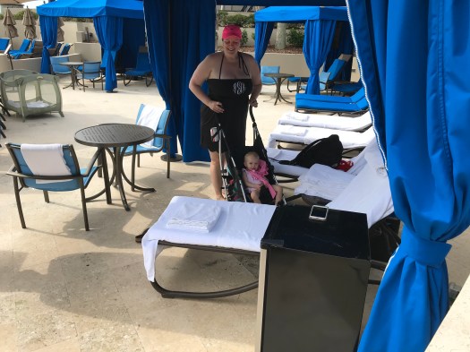 After breakfast we headed to the pool. We did a splurge and rented a cabana because we wanted to spend as much time as possible outside. The cabana has the capability to block out sun and has walls so we could even darken it some for nap time. Although the price was high we enjoyed the ability to have a shaded place to sit and have a shaded area for nap time and play time. We enjoyed lunch by the pool and unsurprisingly it was just as good as the other two meals we ate at the Ritz.