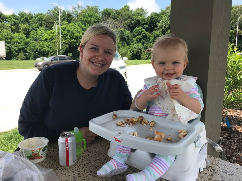 You might be at this point and thinking we are absolutely crazy, and you would be right! đŸ˜‚We got up early in the morning after my overnight call shift and headed south. We decided to make it an adventure with some old school road trip stops. We packed a picnic lunch and planned to hang at a rest area for a little while and let Rosie get out of her car seat. If you’re wondering what one does on a long car trip with a 1 year old, the answer is: almost the same thing you do at home. We basically maintained our schedule with Rosie. We left before she normally gets up so she went back to sleep in her carseat. Then I sat in the back with her and fed her breakfast when she woke up. We played, then she morning napped, then we stopped for lunch, then afternoon nap…you get the picture. We will post more about our traveling with baby/toddler trips, but that’s for another day.