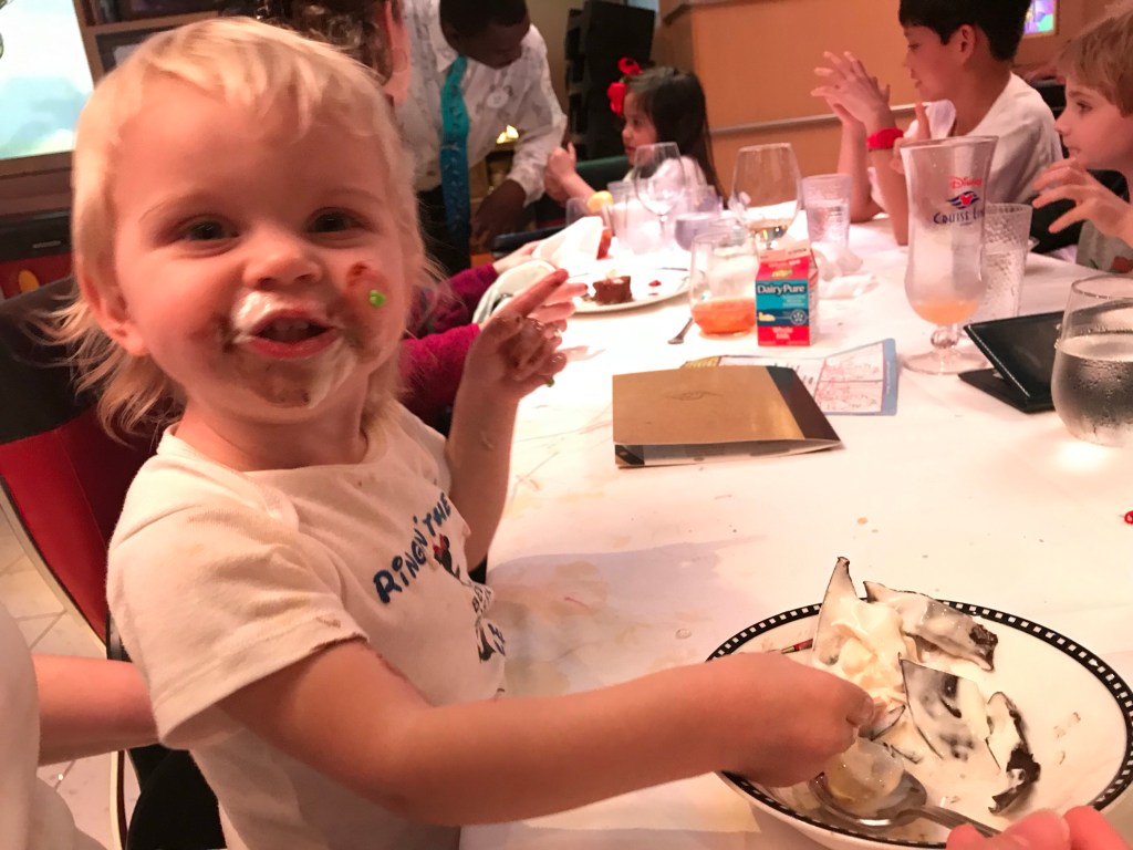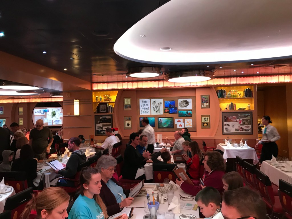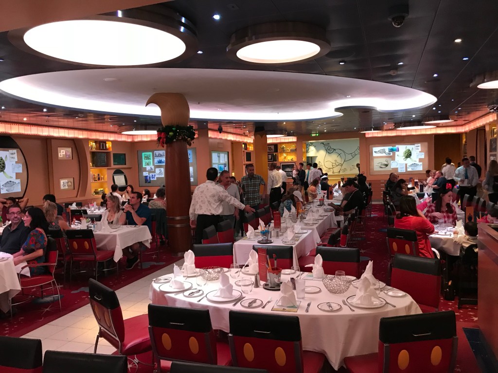 Full disclosure, we are not generally fans of Main Dining Rooms (MDR) cruises. We tend to frequent specialty restaurants while cruising and we usually prefer any time dining. However, Animator’s Palate was different much better than the typical MDR, the food at Animator’s Palate was excellent! Rebekah and I both agreed this was the best MDR food we have had on a cruise. I cannot say enough good things about the food and service during this dinner. Our server was so amazing. He was so funny, did magic tricks, and was not flustered at all by our crazy kids J