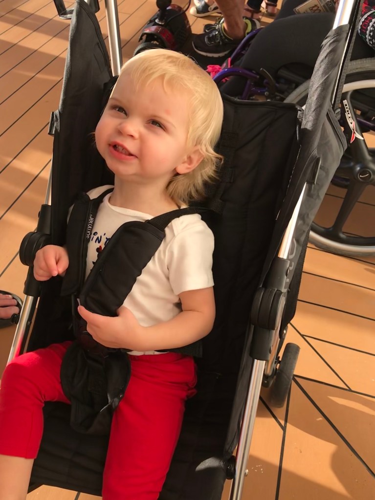 By the time we go to the room, it was time for Roseanne to take a nap, so Ben stayed back with her while Rebekah explored the ship with her friends and ended up winning a $75.00 spa credit! After unpacking and a quick nap by Roseanne, it was time for muster drill. The cruise is about to get underway!