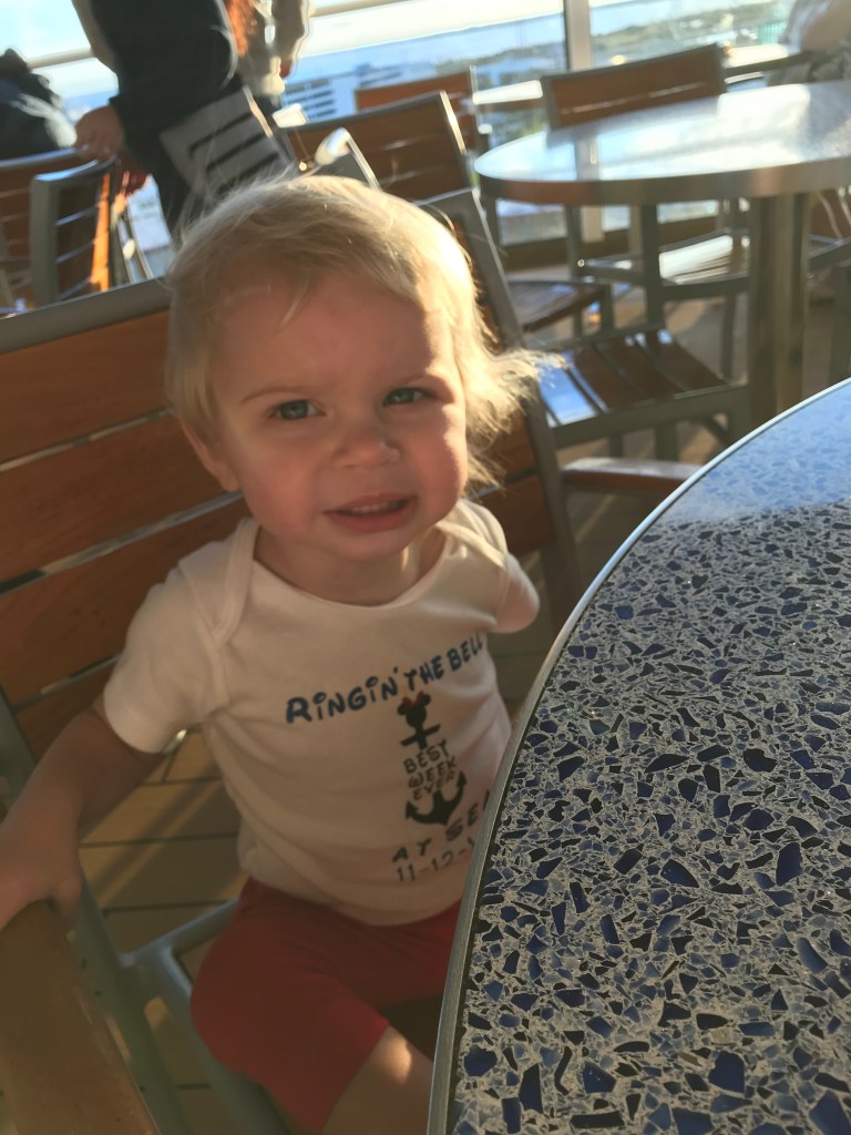Once we made it on the ship we were hungry, so we headed up to Cabanas Buffet for lunch. The experience at Cabanas was similar to most other cruises on the first day. The buffet was crowded and CRAZY. The food was typical cruise buffet food, with a large selection to please everyone. We spend a large amount of time researching our upcoming vacations via reviews online, so we had read a bunch about DCL. Some reviews stated that they thought the food at Cabanas was a higher quality compared to other cruise lines. We did not agree with this. I thought the buffet food was fine but the selection of food was somewhat smaller relative to other cruise lines.