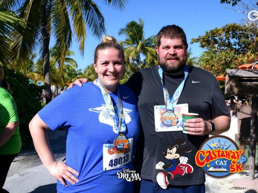 On a whim, we had decided to do the Castaway Cay 5k. Rebekah is not a runner AT ALL, but it seemed like a fun experience to try out so we went for it. We took Rosie to the nursery again (for an upcharge) and headed to the designated meeting point for the race. The 5k is included in the cost of the cruise. That’s right…included. You don’t hear of that kind of thing often. It does not include a shirt (as many races do) but it does include a medal…so that’s super fun. One can sign up for the Castaway Cay 5k run at guest services starting on the first day of the cruise. At the time we signed up it sounded like a good idea. However, when it came to the day of the run it did not see like as great of an idea as we headed down to the starting line. Prior to the race, you will meet in one of the clubs in the back of the ship to receive your race number and go over the layout of the course. From there you disembark as a group and walk approximately 1/2 to 3/4 of a mile to the starting line. We had a large group take part in the run on our ship, I don’t remember how many exactly but I believe they said it was around 300.