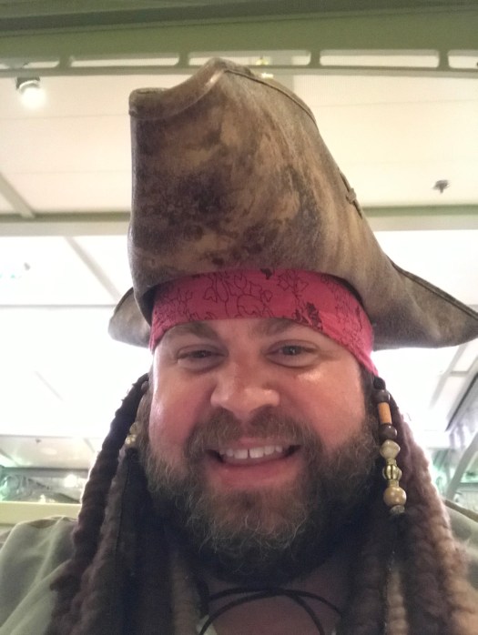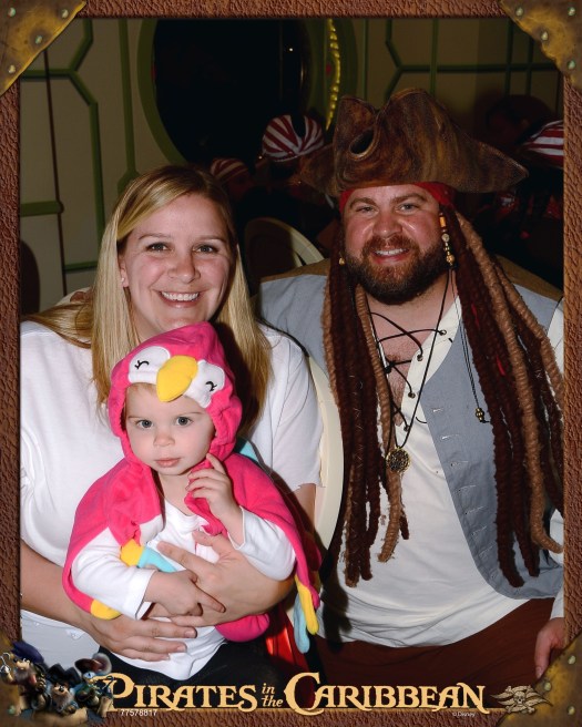 We were running a little late, due to my snorkeling adventure. We hurried back to the ship and had to get dressed up for pirate night. Rebekah and our group of 11 all brought costumes, I went full on Jack Sparrow and Rose dressed up as a pirate parrot. Soon after we got dressed we headed down to the pirate themed dinner. We weren’t sure how many people would participate in pirate night, but to our pleasant surprise it seemed like the vast majority of cruisers became pirates that night.