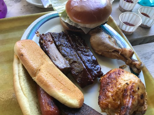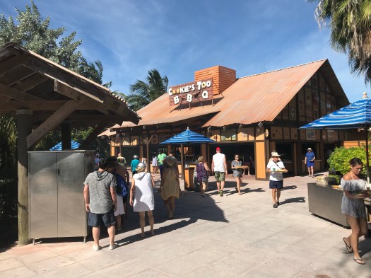 After an hour or so of playing we headed over to eat lunch at the BBQ. There was a large covered eating area and there were multiple buffet lines you could go in. There was a HUGE selection of food including: hamburgers, hot dogs, chicken, ribs, different salads, cookies, chips, corn, etc… Everything we had was great. It was also nice because there were soft drink fountains right by the buffet. And bonus…soda is included on DCL! Soda is an upcharge on a lot of other cruise lines, so if you are a soda drinker this is nice!