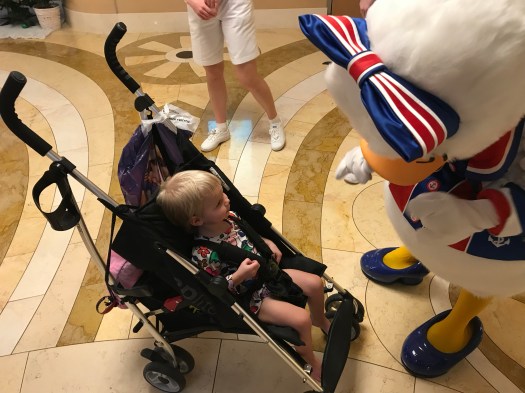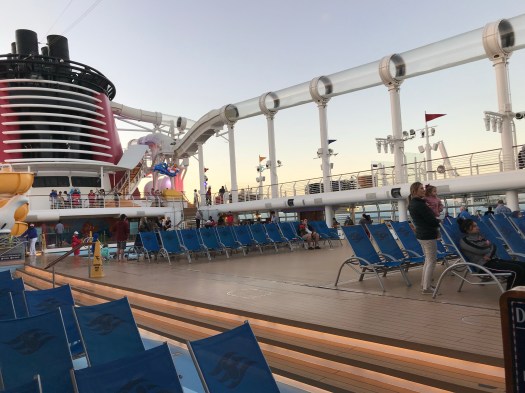 We wanted to go to the onboard splash park with Rosie because it was another nice day. However it was closed presumably to a kiddie accident and it never re-opened the rest of the day. As with most cruises, littles who wear a diaper and are not toilet trained are not permitted to use the cruise pools. This is NBD if you know about it in advance but can be a major disappointment if you are not prepared. Luckily the Dream has the splash pad for those kiddies but if it’s closed there is no water option for your diapered child. We had fun walking around and meeting characters so it was ok, but keep this in mind so you and your kids won’t be disappointed.