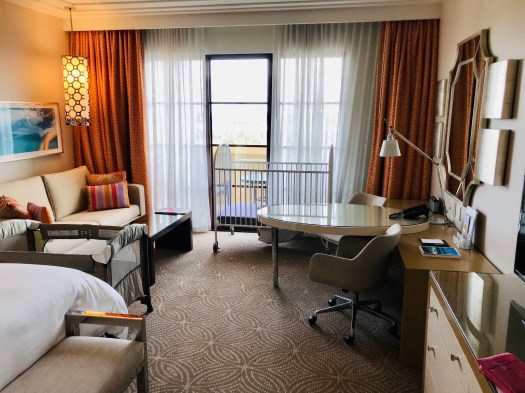 We were lucky to have an early morning direct flight, so by the time we got our bags and headed to the resort, we still had almost an entire day ahead of us! As we arrived at the hotel, we instantly felt relaxed. The bellman immediately took our bags and escorted us to the front desk to check in. The check-in was quick and we were even given a token to get a free ice-cream during our stay. Our room was ready, even early in the day. We headed up to our room and to our delight, everything we requested was all set up. There was a pack-in-play, a crib, and a diaper genie already in the room. Family friendly victory #1! Adorably, there was a little welcome gift for our little one. It had a little stuffed animal and a few cute little toiletries. What a nice touch!