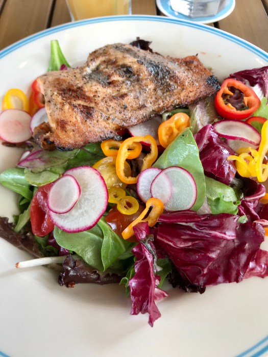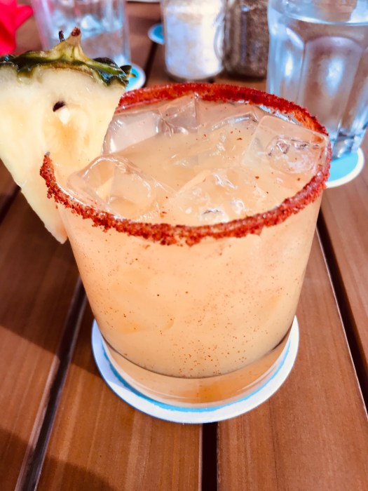 After we got settled, it was time to get some lunch and explore the property. It was winter at home, so we wanted to eat outside. We chose to lunch at the restaurant near the pool PB & G . The food and drinks were good and pretty reasonably priced for this type of property. After lunch Rebekah went down to the pool to relax while Rosie took a nap and Ben watched a Marshall University Basketball game (Go Herd!). After nap it was time for dinner.