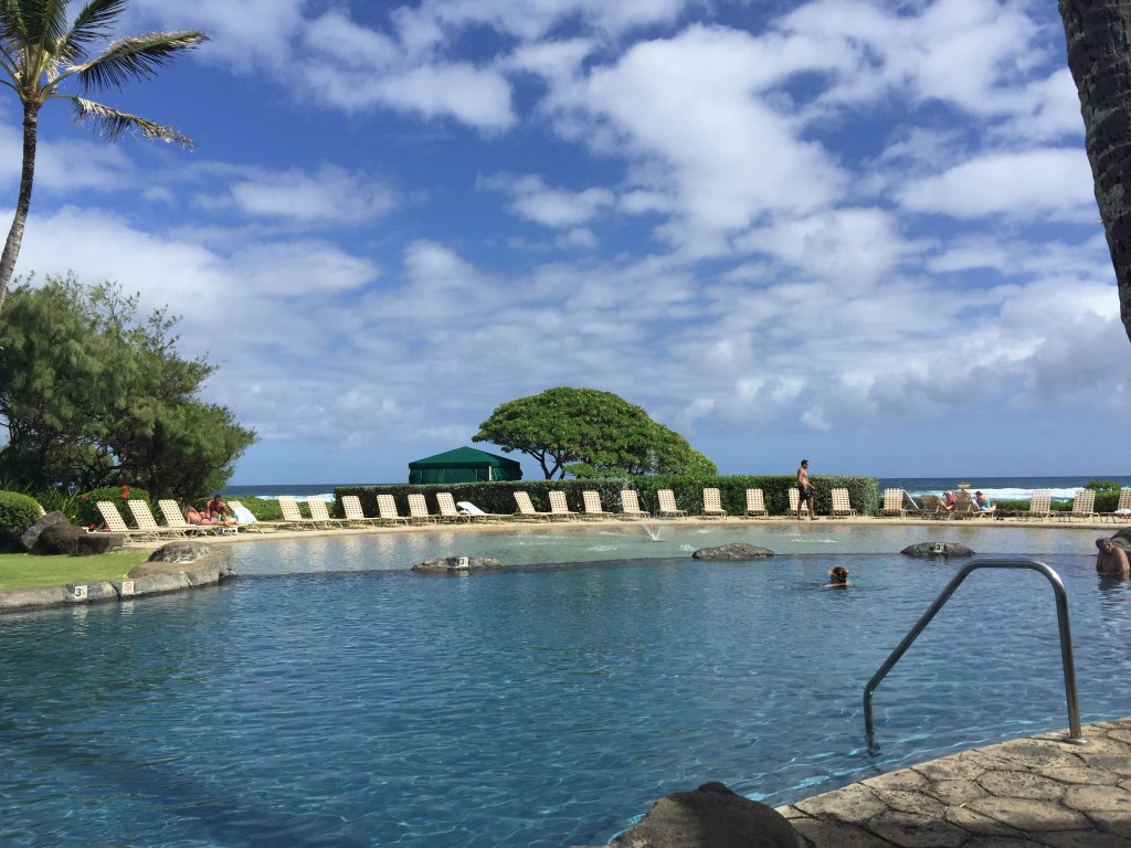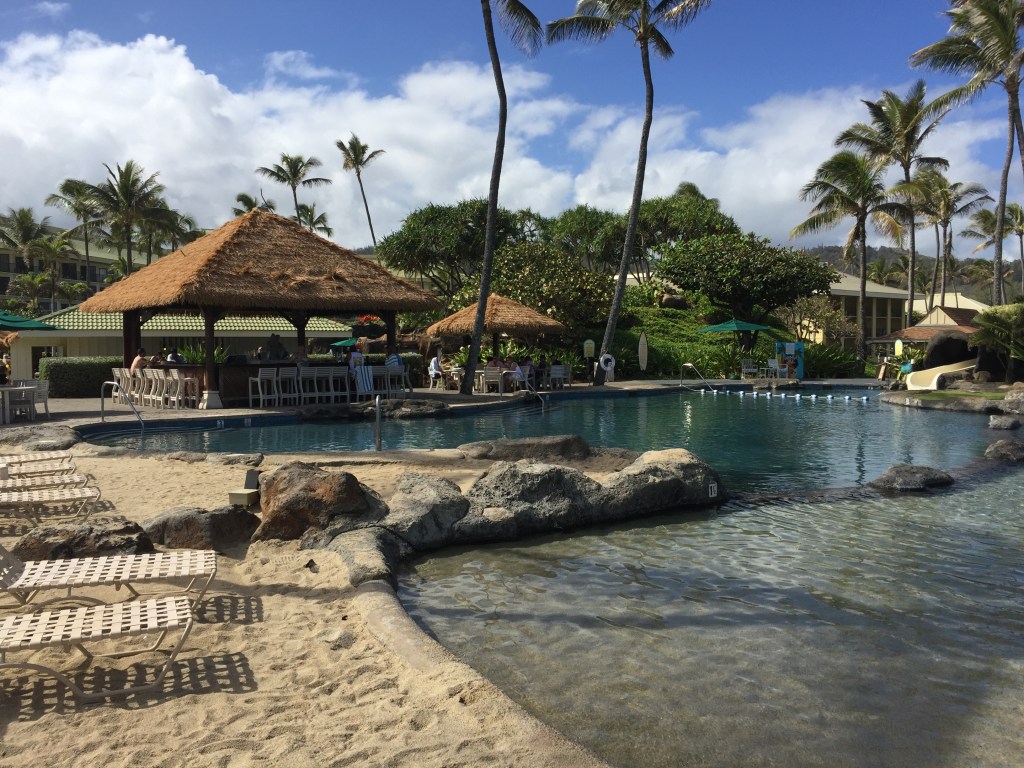After we drove around for a while we stopped off at the Hotel we had rented through Resort for a Day. If you are unfamiliar with this company it is a website that sells day passes to resorts at different cruise ports. The website is of the same name, http://www.resortforaday.com. They have locations at several ports of call. We have used them in St. Thomas, Grand Cayman, and now Kauai. I would be happy to use them in any port they have a site. Which resort amenities you can use depends upon the resort but the “pass” provided by the website spells it out in great detail. One of the drawbacks to Resort for a Day is that at some locations the person at the front desk of the resort is confused and has to ask someone else (manager) if that is a real thing. Once they get it figured out though, you are free to use whatever amenities available to the pass. At this resort (Aqua Kauai Beach Resort) you can use the pools, beach, you have towel usage (don’t have to bring cruise towels) and a 30$pp food credit. This credit cannot go toward alcohol but you can get lunch. Also, the front desk told us we were allowed to stay and use the amenities until the pool closed. It as $79pp for the pass, but $30 of that was toward food so its a pretty good deal at this resort. The resort is easy to find and not that far from the port if you decided to take a cab here instead of renting a car. The pools are very nice and had good chairs to sit in and it was very un-crowded. We felt like we were almost alone there. We ate lunch and it was very good AND covered 100% by the credit!