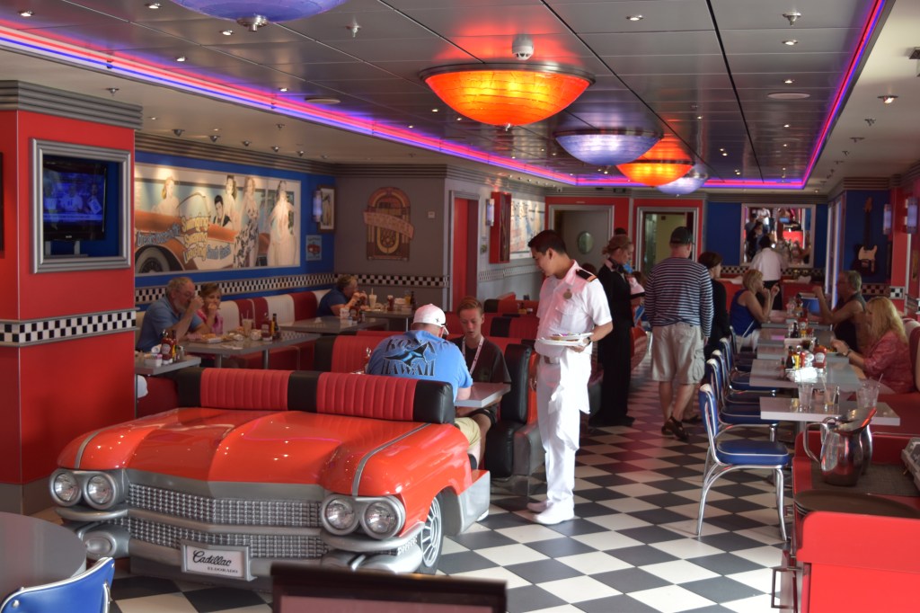 It was so beautiful near Waimea Canyon and we are glad we got up early to check it out. We didn’t want to wait too long to return the car because the ship left in the early afternoon. We headed to the rental place, turned in the car and took the shuttle back to the ship. Then we boarded the ship the last time. 😦 We decided it was lunch time so we tried the Cadillac restaurant. It is supposed to be similar to O’sheehans on the other Norwegian ships and has a relatively similar menu (for those unfamiliar with O’Sheehan’s, it is mainly bar-type food). We both felt like it wasn’t quite as good as the normal O’sheehans. It has a 50’s dinertheme. It did have outdoor seating so we appreciated that. We loooove a good outdoor meal!