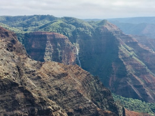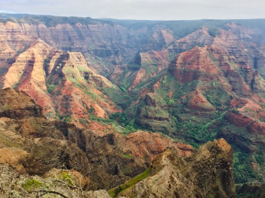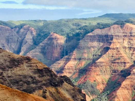 The next morning we got up and walked out after breakfast hoping our rental car was still there parked on the shoulder. Good news…it was! We hopped in the car and headed out in the opposite direction from yesterday. We were going to Waimea Canyon (https://hawaiistateparks.org/parks/kauai/waimea-canyon-state-park/). We followed the directions on the phone GPS and it took us up a long and winding scenic road. It was a beautiful drive. Yet another time that a convertible might be a good choice for this trip. If you like the wind in your hair a jeep or convertible is the way to go to enjoy the great weather and the breeze.