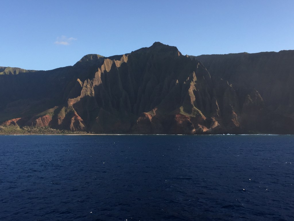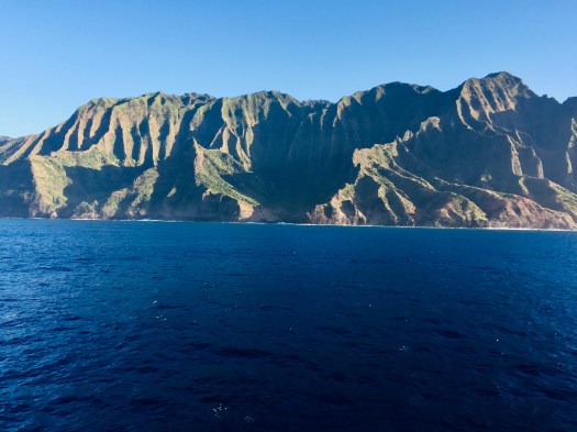 For the Napali coast sailing we chose to stay on our own balcony because it was port side. We knew this was going to do a nice “drive-by” of the Napali Coast. The cruise line provides informational narration which can be heard on deck 6 or on the stateroom TV. Our TV was on an arm that allowed it to be pulled out onto the balcony and we could hear the narration from there. It was a nice afternoon sailing through beautiful scenery. What and unforgettable experience.