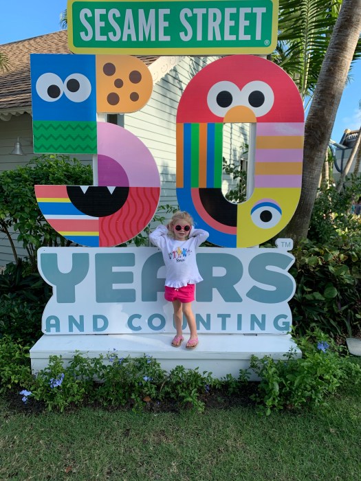 Other then the obvious reason to visit Turks and Caicos…you know, those beautiful beaches and blue water, haha… the main reason we decided to visit Turks and Caicos was for our Elmo loving daughter. If you’re unfamiliar with the resort, Beaches Turks and Caicos is an all inclusive resort for families that has an extensive Sesame Street association. You can read more about other parts of our trip to the resort here. If you watch Sesame Street on PBS, you may have noticed the Beaches’ sponsorship of the show Sesame Street in the commercials before and after it’s airing. The ads make it look like a paradise that includes your toddler’s favorite characters, and spoiler alert– It did not disappoint! This resort is teeming with Sesame Street opportunities. There is something available for every Sesame Street loving person you can fit into your room or suite! This might sound scary if you are not bringing a toddler or child who loves Sesame Street…but never fear! The Sesame Street theming and activities are easy to avoid if you’re not into that.