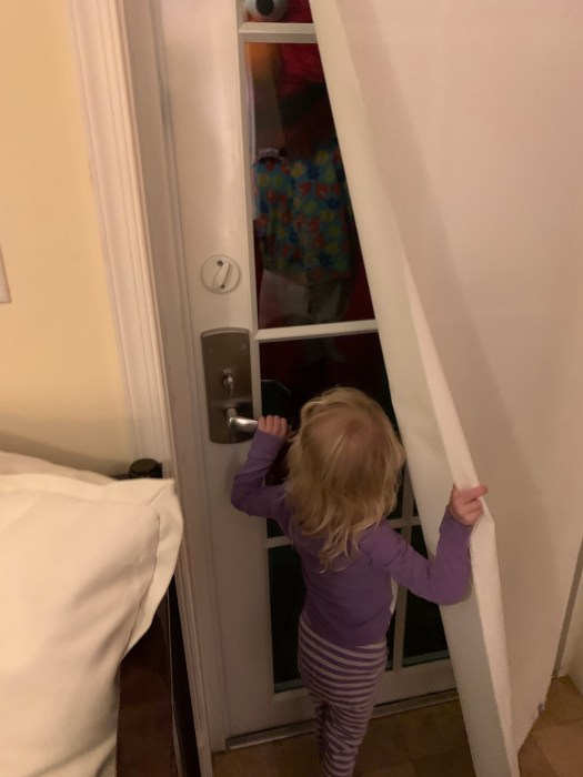 When the appointed time arose, there was a knock at the door. We told Rosie to head to the door to see who it was.