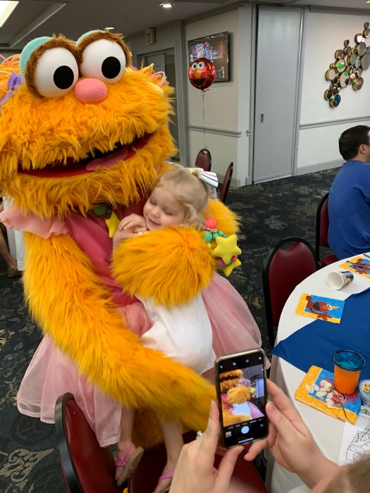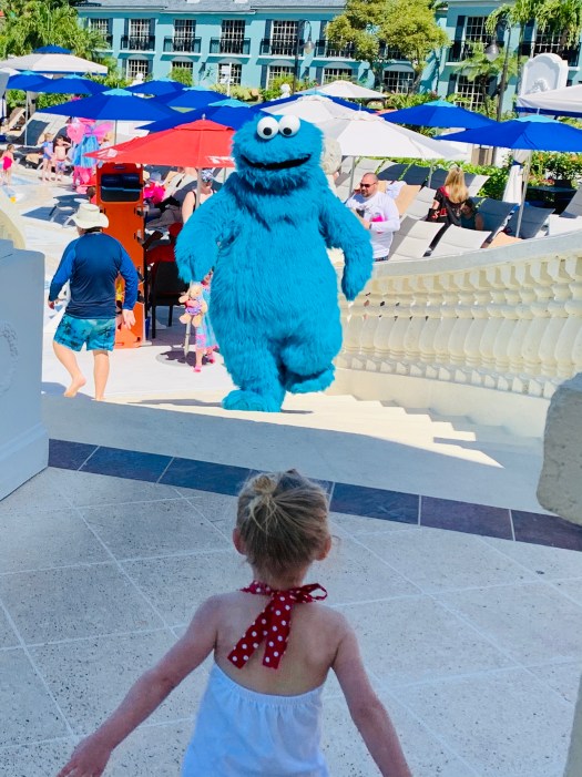 Character Breakfast: (upcharge). Having a breakfast with all your favorite Sesame characters sounds like a toddler’s dream! It is set up like most character breakfasts with a few additional perks. Unsurprisingly, there is breakfast food that is served buffet style. Also, there are characters who go from table to table meeting the guests and getting photos. A large number of characters are there, so there is a chance to get pics with so many of them! Our favorite part was the dance party that took place at the end. It was such an exciting opportunity to get close to the characters and dance with them. The breakfast was a little over an hour and was enjoyable. We booked this in advance because we had no idea how often the characters would be around the resort and/or if we would be able to see them all. Luckily, these characters are readily available every time you see them, so theoretically you could see them all without going to the breakfast. The food was fine, but it wasn’t excellent. If we were first timers we would definitely book this again, but if we went on a repeat trip we might skip it.