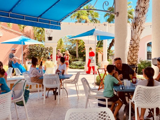 Arizona’s Southwestern Cuisine is a great spot for lunch! We liked it enough to eat lunch there twice. It is located in the Caribbean Village, right on the ocean. The restaurant is abutting the Caribbean pool. Dinner at this restaurant is a la carte. At lunch food is served buffet style both inside and outside. Inside you will find different, fruits, salads, etc… Outside you will find burgers, hot dogs, tacos, quesadillas, etc. It was our favorite lunch spot. Plus it was a great view while you were picking up food.