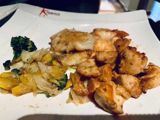 We typically like Japanese steak houses when we are on a cruise, we were hoping Kimono’s would be a similar experience. This is one of the only restaurants at Beaches that requests reservations. As typical with these type of restaurants, the three of us were seated with another family since the table holds more than 3. A server took our drink orders and then the “show” started. If you have ever been to Hibachi type restaurants, you pretty much know what to expect…but it’s still fun. At this experience, our chef wasn’t the most enthusiastic chef in the restaurant but we still had fun. A few of the other chef-performers around the restaurant seemed to be more into it than ours was. Although the food was good, we didn’t quite agree on how good it was. I really liked the dinner…especially the fish while Rebekah did not enjoy it quite as much. Every time we go to one of these type of restaurants we have a great time and the same could be said about this trip.
