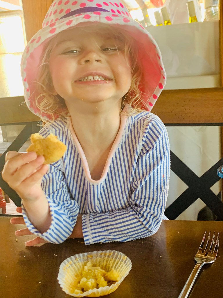 Schooner’s Seafood Grill was our first and our last dinner at the resort. We picked it the first night because it seemed to be very beachy/vacation-y and set the mood for a good week at the resort. Since we ate there a second time, hopefully you can guess we liked it! The menu is primarily seafood based along with steaks and kids meals. Dining is mainly done on the porch, it has a nice view of the ocean before sunset and a fabulous breeze even when the view goes away with the sunlight. There does appear to be a small dining area on the inside, however, we never saw anyone dining in there. The location on the resort is great, as this restaurant is located between the Italian Village and Caribbean village along the main beachfront walkway. Plus, as a side note, their Chicken Nuggets from the kids menu are great too!
